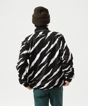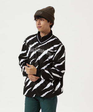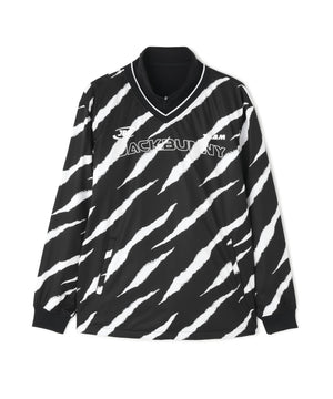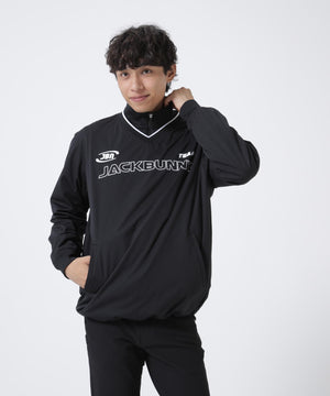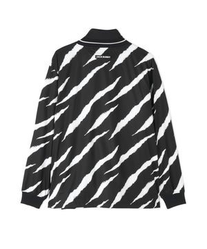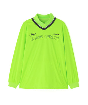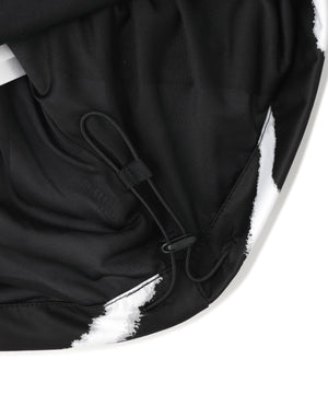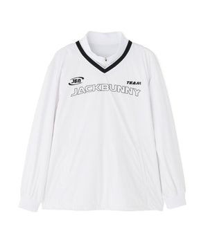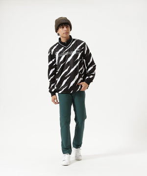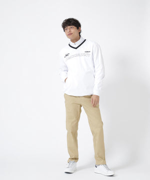 ゴルフからデイリーまでフィットする、ユニフォームのようなグラフィックのこなしでスポーティーなムードのあるアイテムになっています。