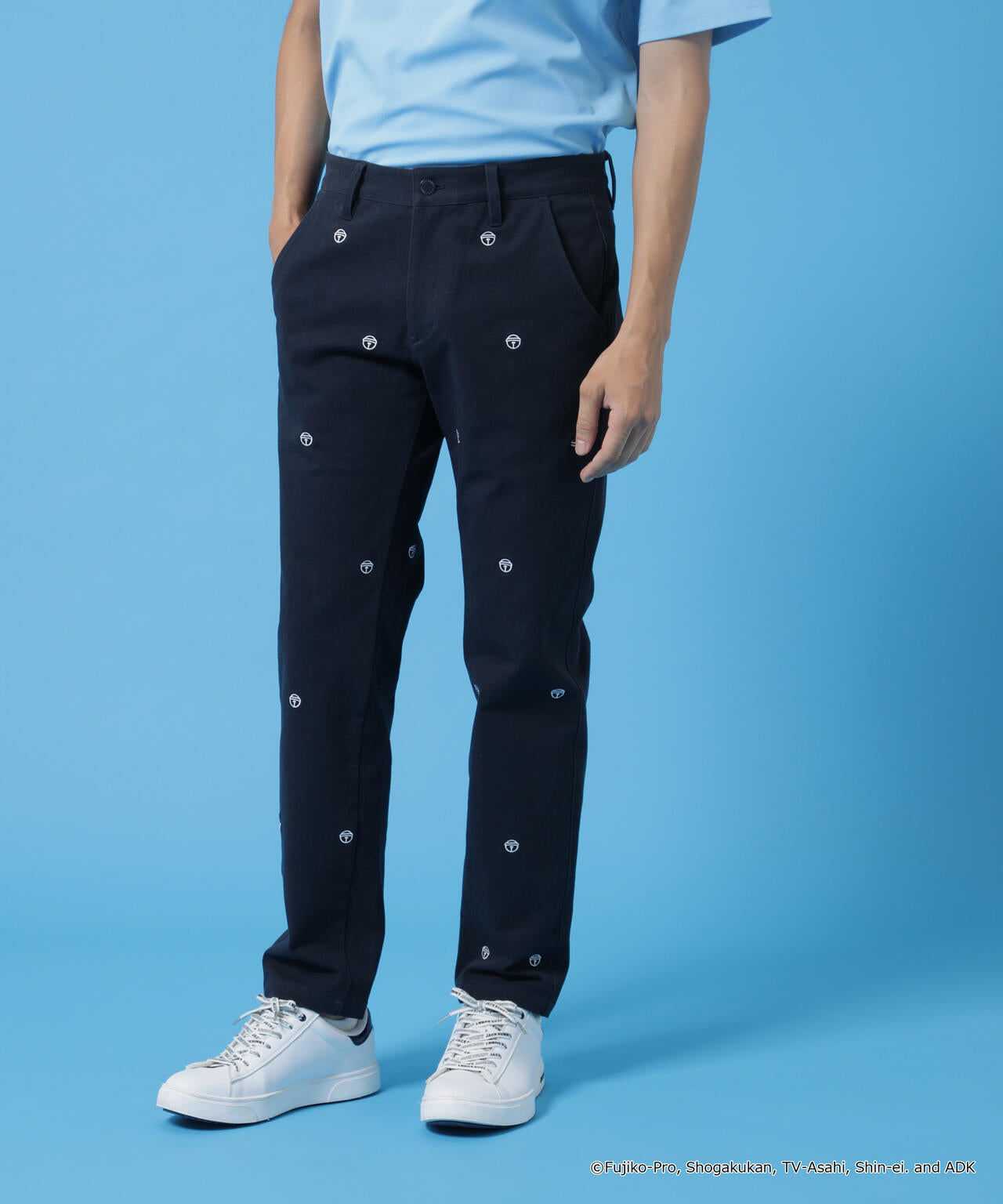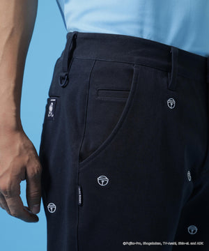 ドラえもんを象徴する鈴のアイコンを刺繍で散りばめた、適度に伸縮するツイル生地で動きやすさを実現した総柄ボトムです。