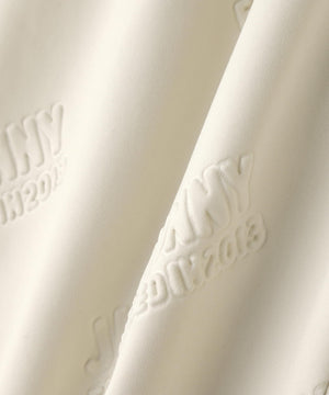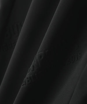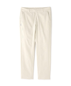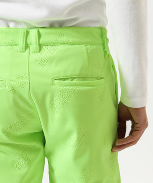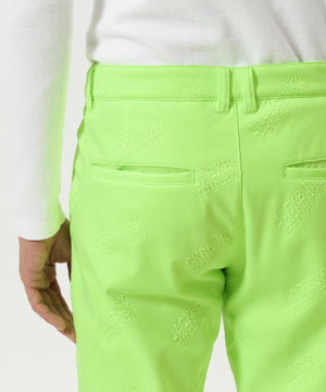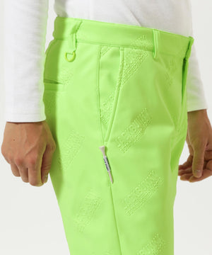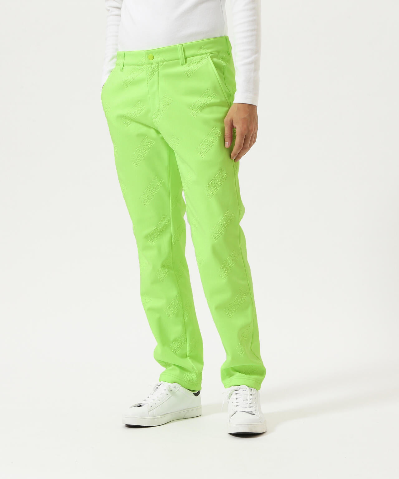 バイヤスロゴを凸凹で表現した無地感覚のコーディネートがしやすさで幅広く活用できる、ラミネートスムース裏地付きロングパンツ。