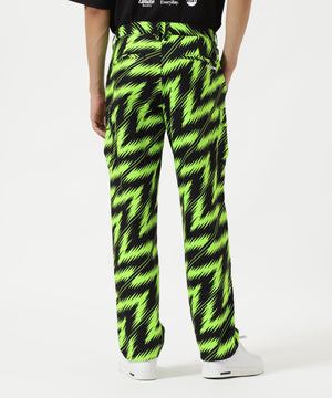 両サイドにポケットを付けて収納性とデザイン性をを高めた、アクティブな総柄プリントのロングパンツです。