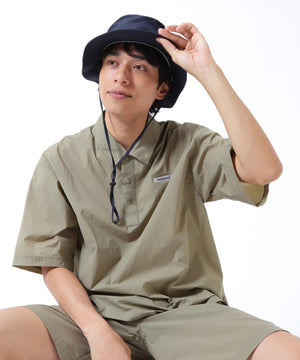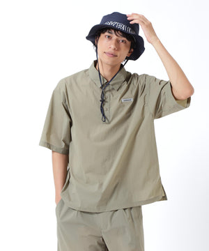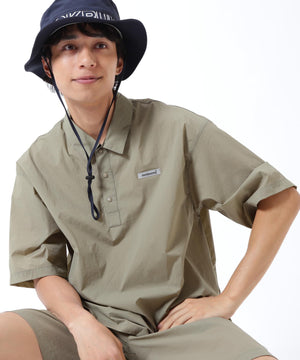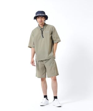 雨水を弾き悪天候にも対応ができる撥水効果と伸縮性のある生地を使用してカジュアルに仕上げた、ナイロンタフタ半袖シャツ。
