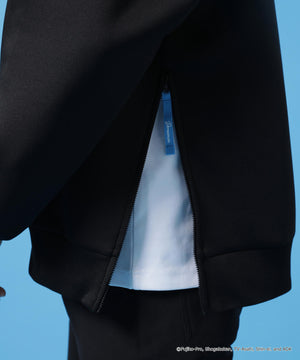 フロントにQUIETボードを持って試合の運営をお手伝いするドラえもんでインパクトを与えた、サイドファスナーをつけて自然な体温調整の実現と着脱のしにくさを解消したリラックスムードたっぷりの一着です。