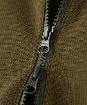 シルエットのアレンジができるダブルジップのフロントファスナーで、コーデやシーンに合わせて色々な着方が楽しめます。