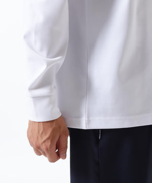 一枚で着てもレイヤードスタイルにも重宝する、ストレッチ天竺長袖ハイネックカットソー。