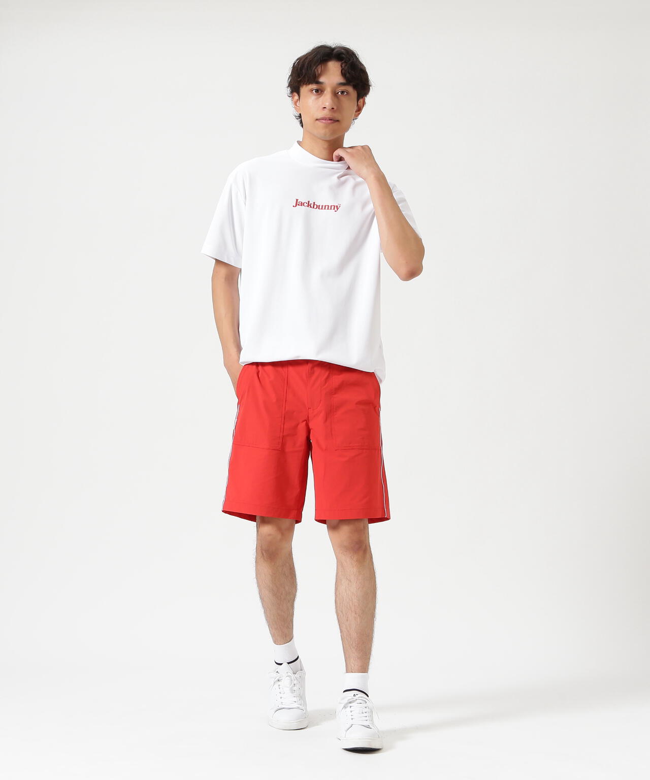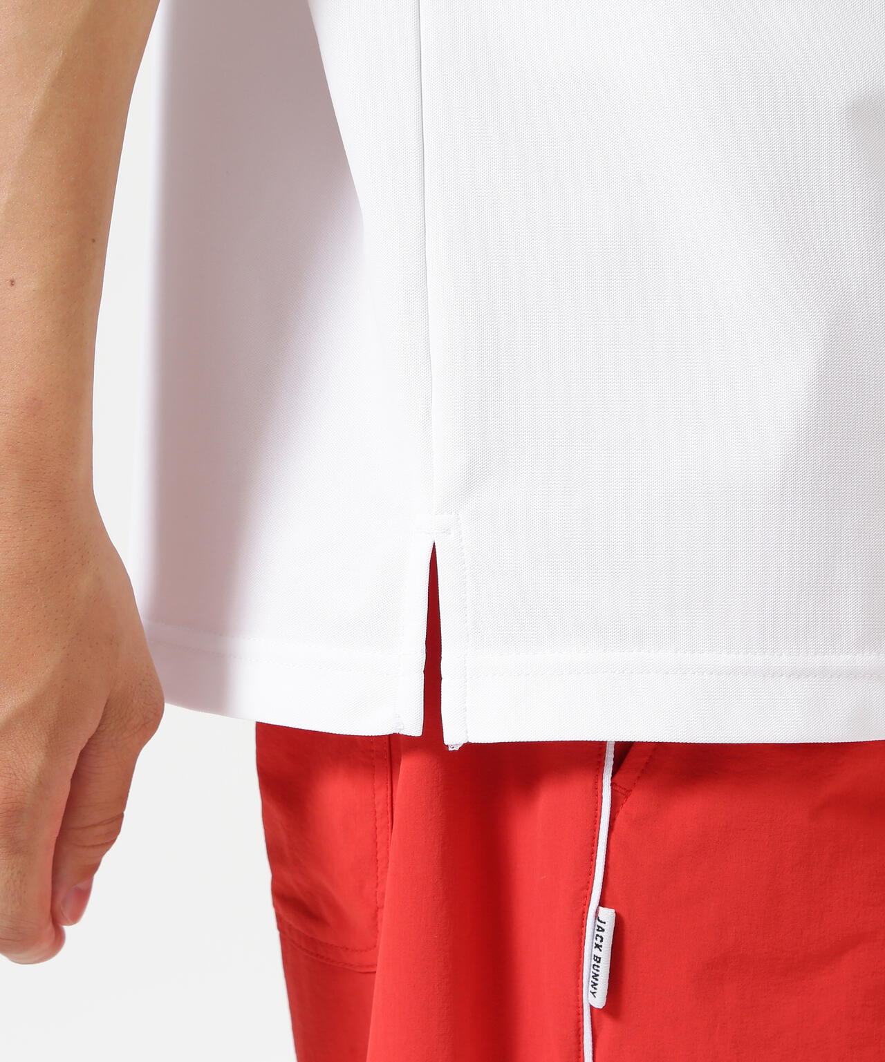UVカット性と吸水速乾性の高いピンカリカノコを使用した、高級感のある独特な面の光沢感が特徴的のモックネックアイテム。