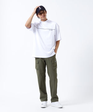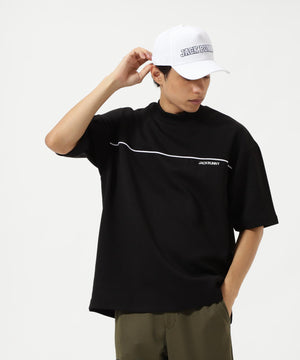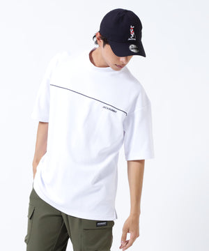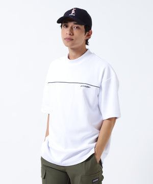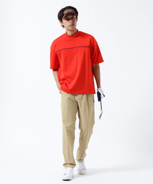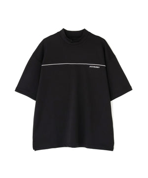 パイピング使いでレトロスポーティーな雰囲気を表現した、天竺ポンチ五分袖モックネック。