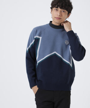 ジャックバニーらしいスターモチーフをダイナミックに表現した、12Gダブルジャガードクルーネックニットプルオーバー。
