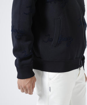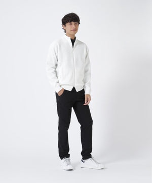 フルジップの羽織やすさでシーズンの変わり目にも大活躍する、12Gダブルジャガードフルジップアップニット。