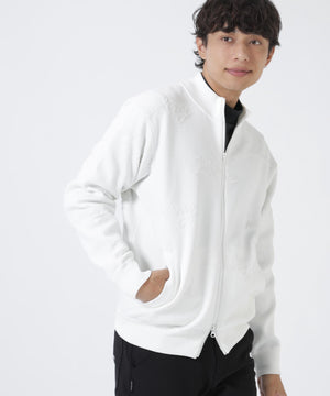 さりげない同色のロゴ柄なので、ゴルフからデイリーユースのコーディネートでも使いやすいアイテムになっています。