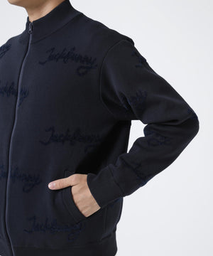 光沢感のある、細かく柔らかい毛羽が特徴のモール素材を使った同色使いの筆記体のJBロゴをバランスよく散りばめたアイテム。