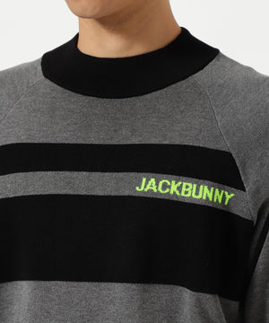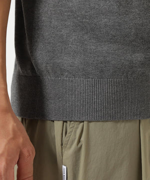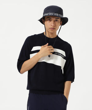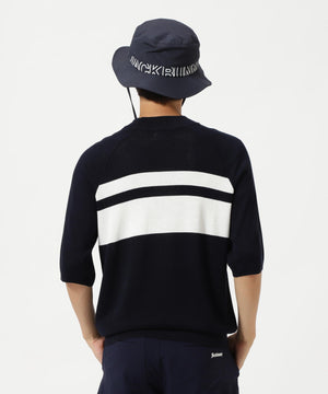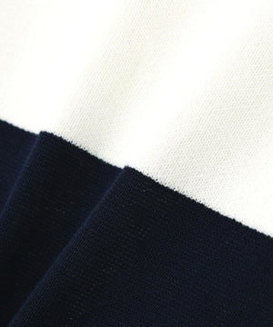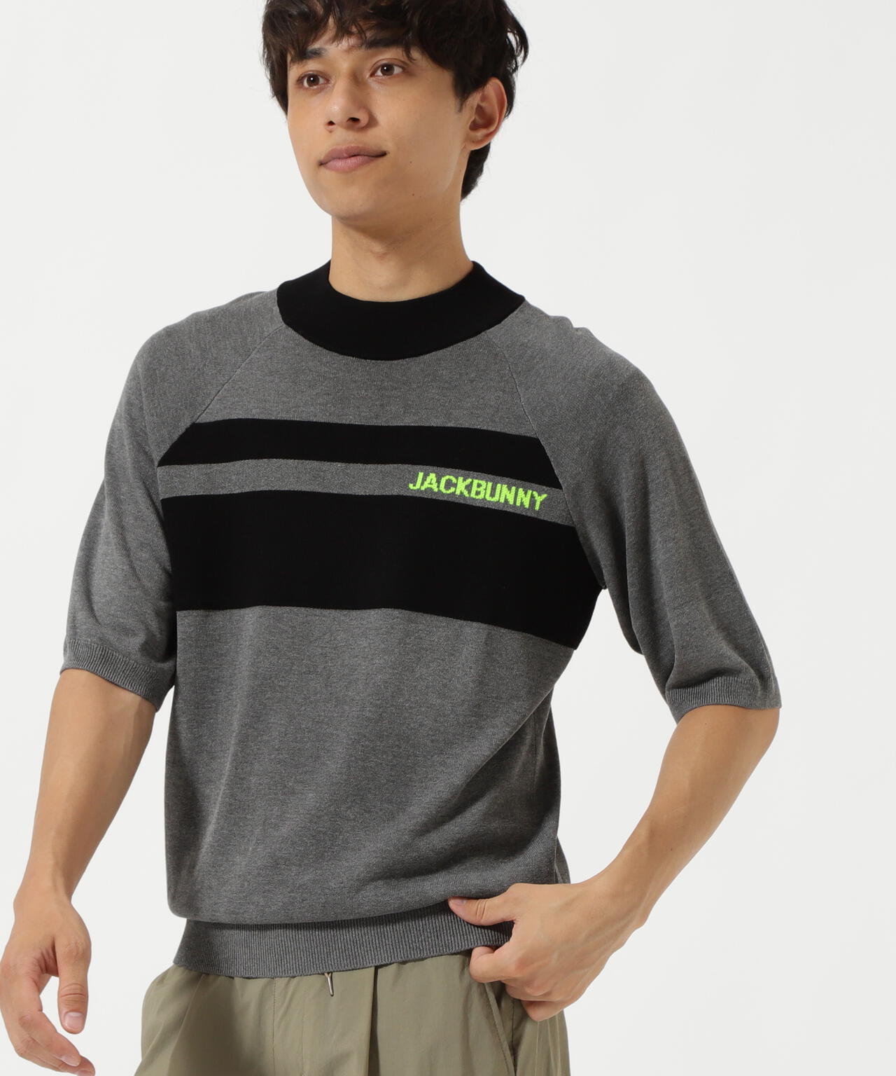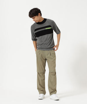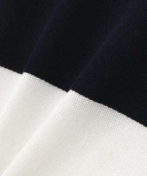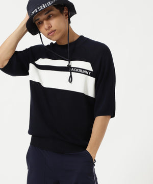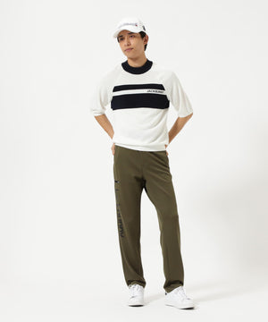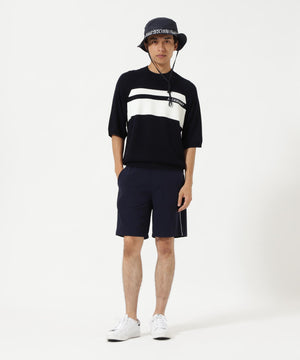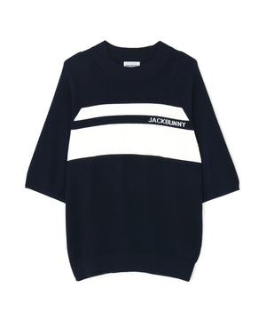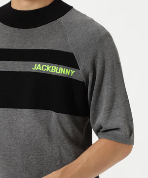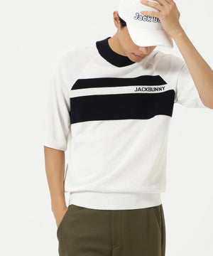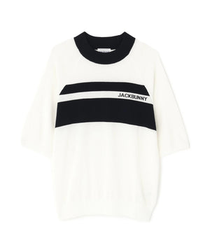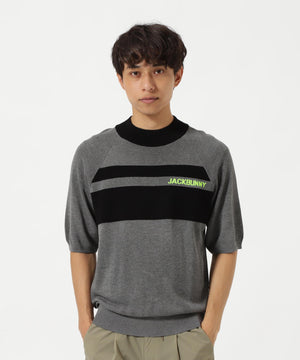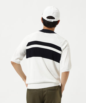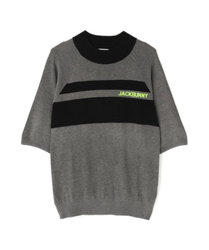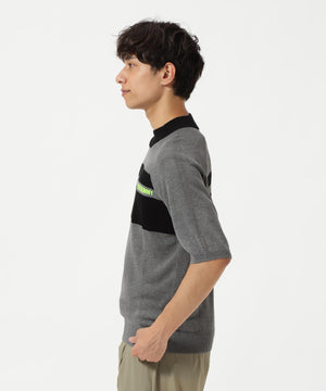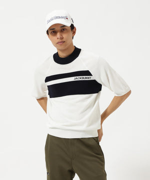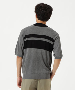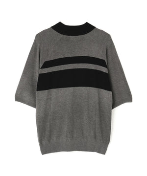 ピッチ違いの2本のラインでシンプルさの中にスポーティーなインパクトを与えた、半袖モックネックニットプルオーバー。