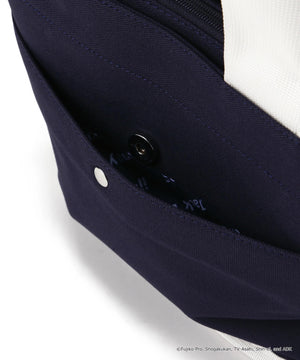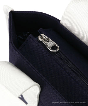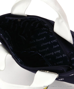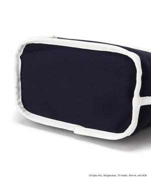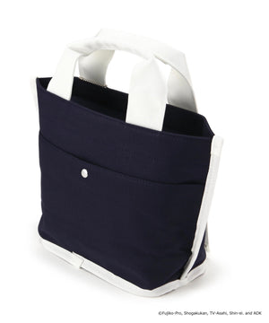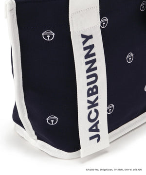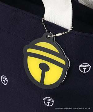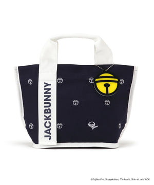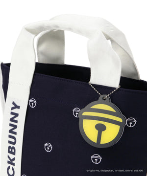 ドラえもんやドラミちゃんを表すアイコンモチーフを散りばめた、ゴルフラウンドに必要な小物やドリンク類などをまとめて持ち運べるちょうど良いサイズ感のトートバッグです。