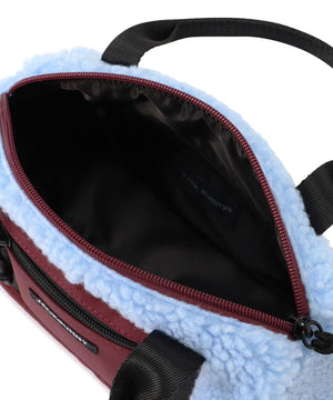 温かさを感じるもこもこのボアを部分使用した、異なる素材の絶妙なボリュームと感とカラーバランスがおしゃれなカートバッグです。