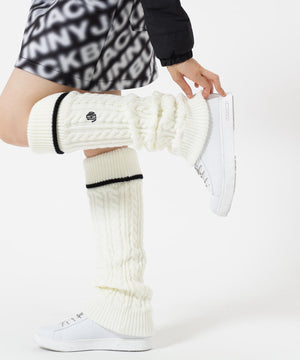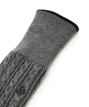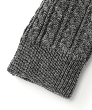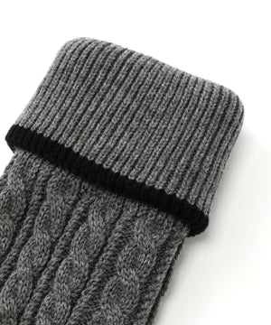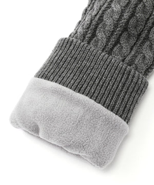 立体的な温もりのあるケーブル編みとフリース調の柔らかな風合でシーズンムードたっぷりに仕上げた、ニットレッグウォーマー。