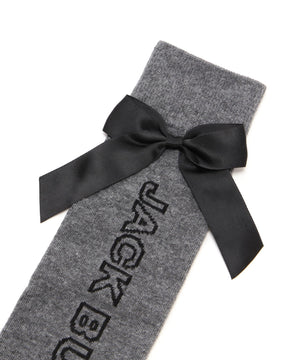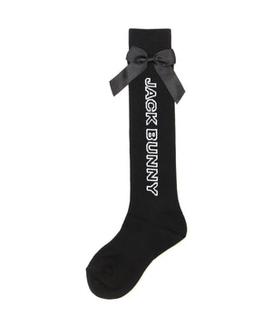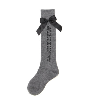 可愛らしさを追求した存在感のあるリボンがコーディネートのポイントになる、リボン付きハイソックス。