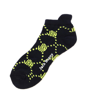 ジャックバニーらしくダイナミックに総柄を表現した、モノグラムアンクルソックス。