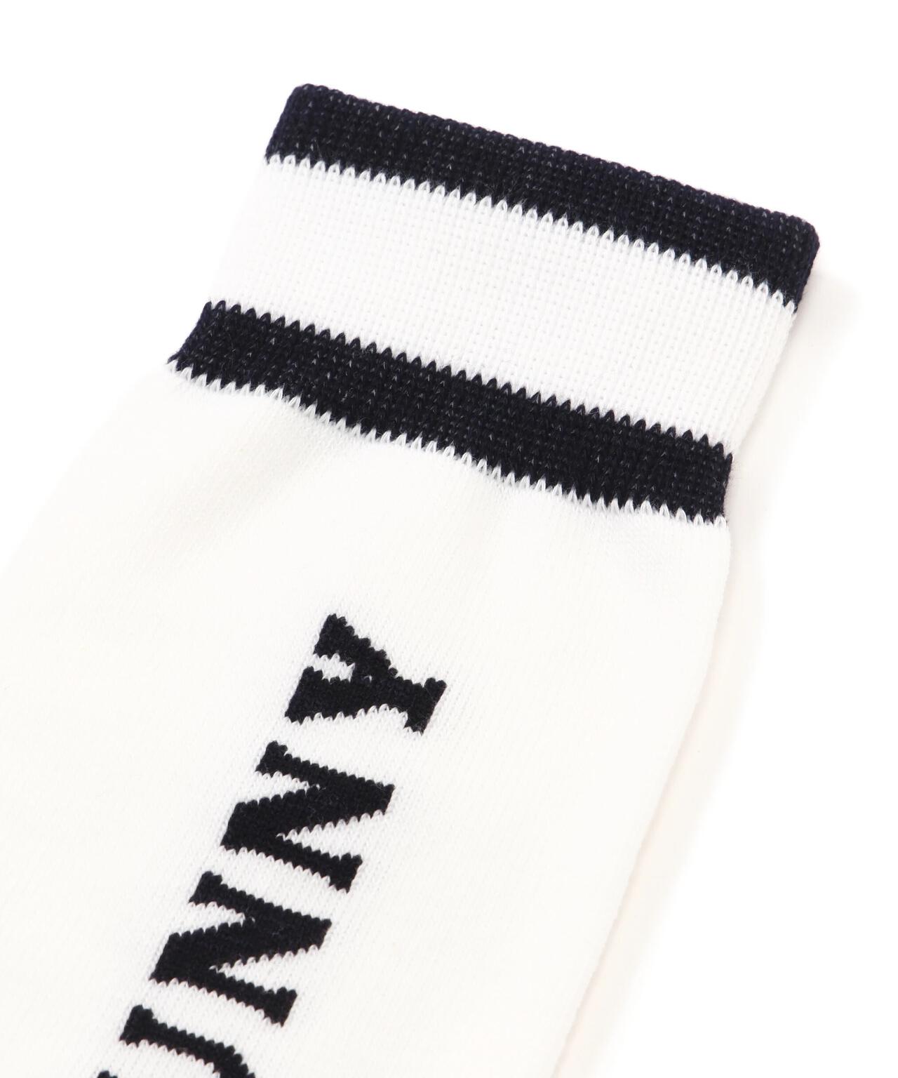 タテロゴとワンポイントのさくらんぼがコーディネートのアクセントになる、ハイソックス。