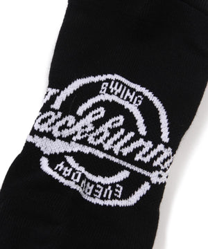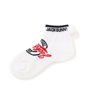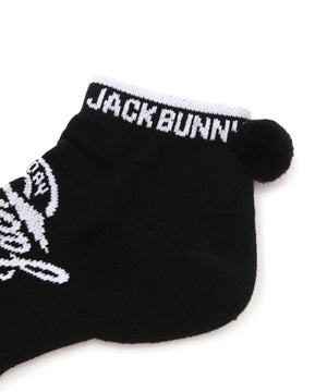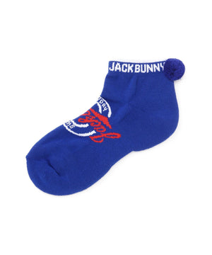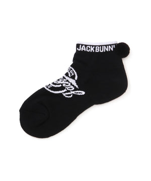 サークル型のJBロゴがポイントになった、梵天付きL字型アンクルソックス。