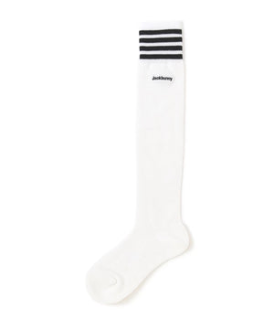 JBロゴやラインを入れた足入れ口がコーディネートのポイントになる、ラインハイソックス。