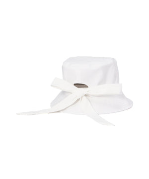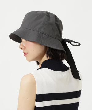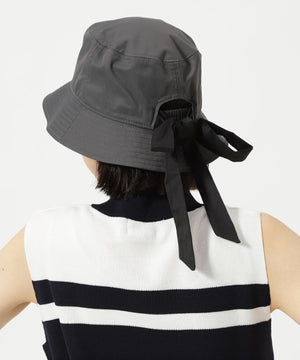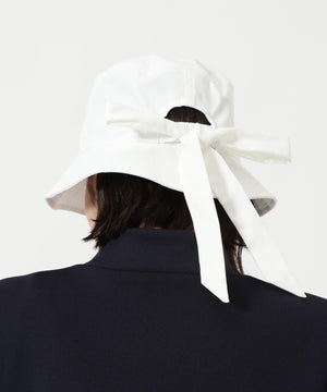 髪を結んだりアレンジしたヘアスタイルでも被りやすい、リボンポニーテールバケハ。