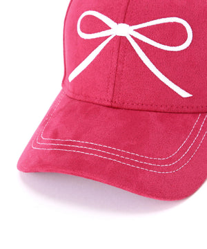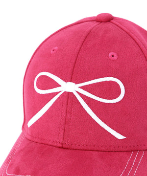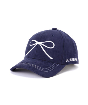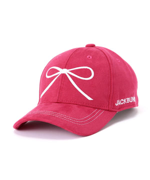フロントにあしらわれたフェミニンな印象のリボンデザインがコーディネートのポイントになる、スピンドルリボンキャップ。