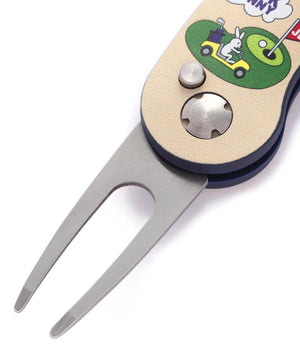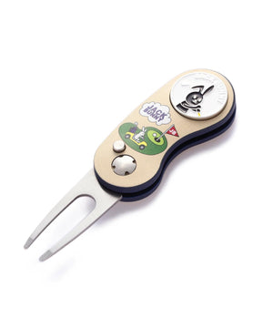 自分はもちろん誰かのディボット跡を直す際にも重宝するスマートなゴルファーの嗜みとしても携帯しておきたい、マーカー付きの安全便利な折り畳み式のグリーンフォークです。