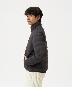 着膨れを抑えて軽くて温かな着心地を体感できる、薄中綿ジップアップブルゾン。