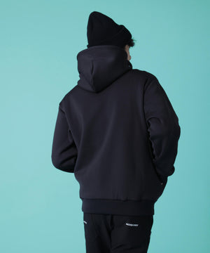 生地の裏側に空気の層を作り出し、優れた断熱効果を発揮してくれる、ふわっとした肌面のタッチも気持ちいい軽量肉厚保温耐摩耗性ニット素材のKARUISHIを使用。