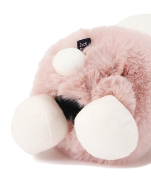少し毛足のあるファーのウェアを纏ったうさぎの温もりのある肌触りがシーズンムードを演出する、おしゃれで可愛いぬいぐるみタイプのヘッドカバーです。