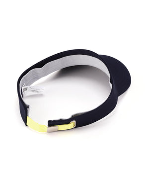 配色使いで配置したフロントロゴとバックパネルのアジャスターがコーディネートのポイントになる、バイカラーバイザー。