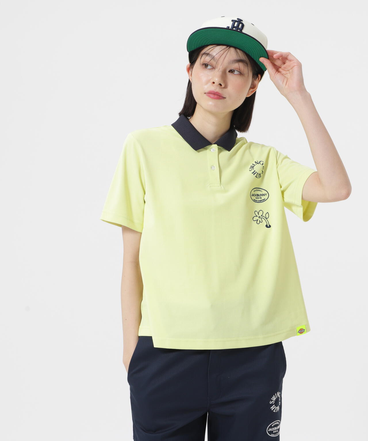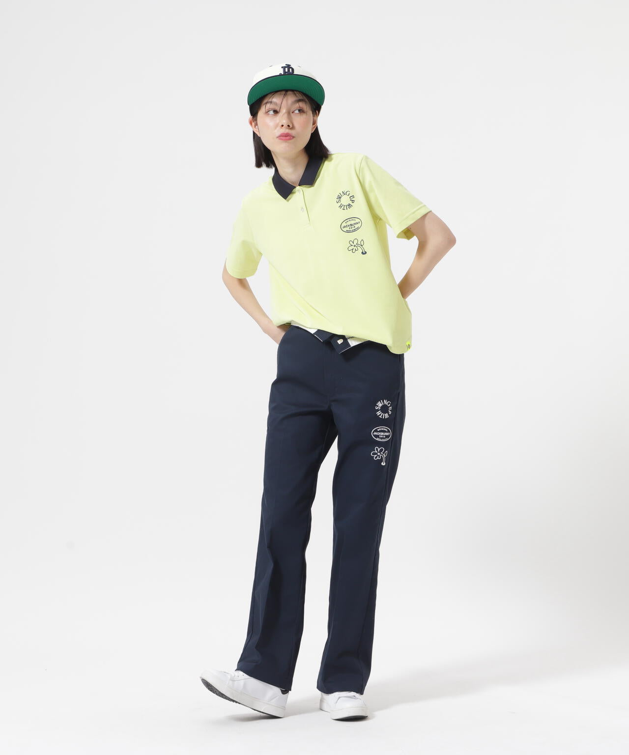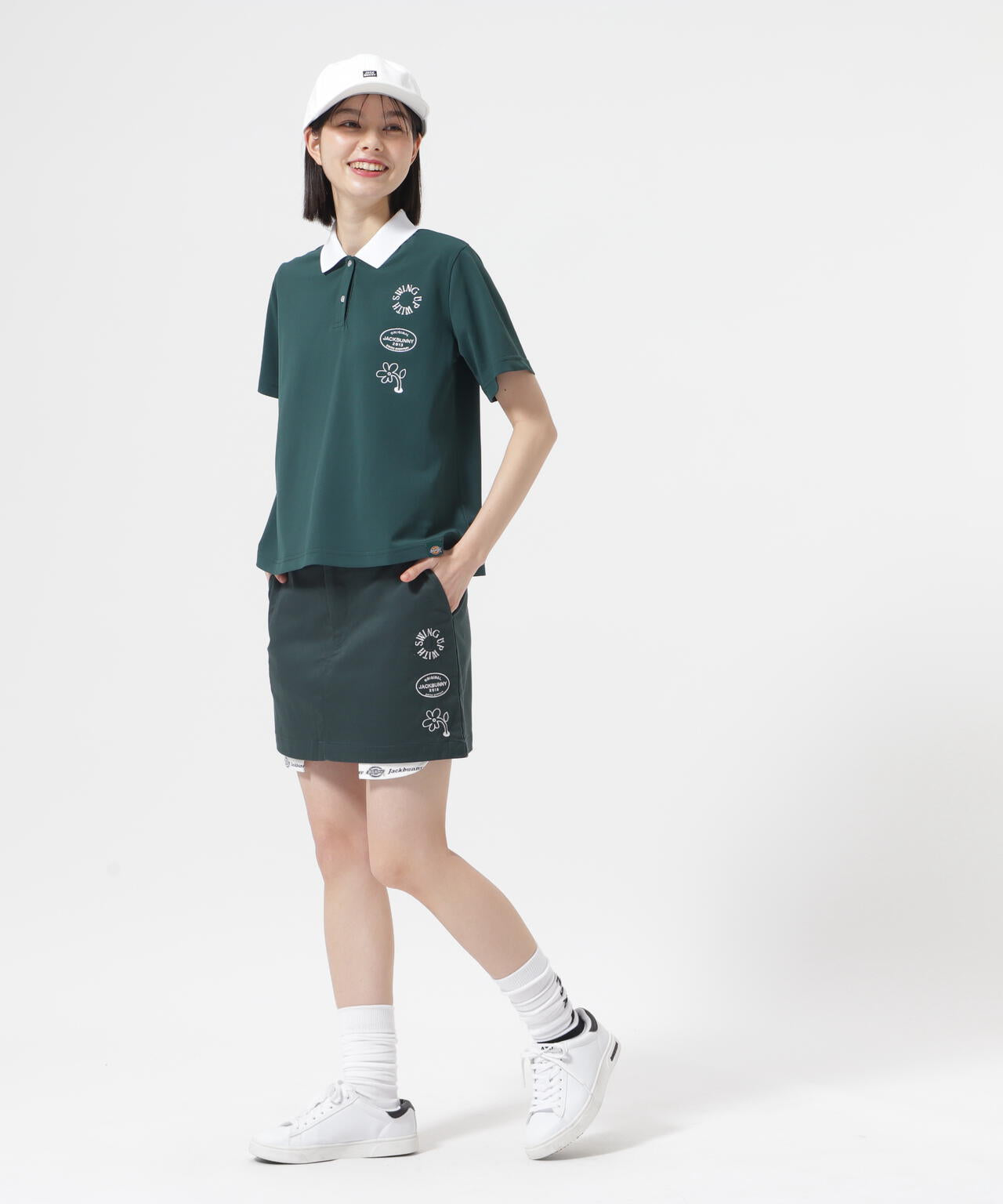 馬具モチーフの躍動感あふれるバックプリントでインパクトを与えた、Dickies PEカノコ半袖ポロシャツ。ゆるっと着られるストリートテイストなこなれたシルエットが可愛い、着こなしの幅を広げてくれる春夏らしいポロシャツです。さらりと着られる肌触りの良さを実感できる、通気性や吸水速乾性に優れたポリエステル生地で作られています。配色で切替したリブ襟や胸元のモチーフがコーディネートのアクセントにもなる、ゴルフからデイリーユースにも重宝する1着です。