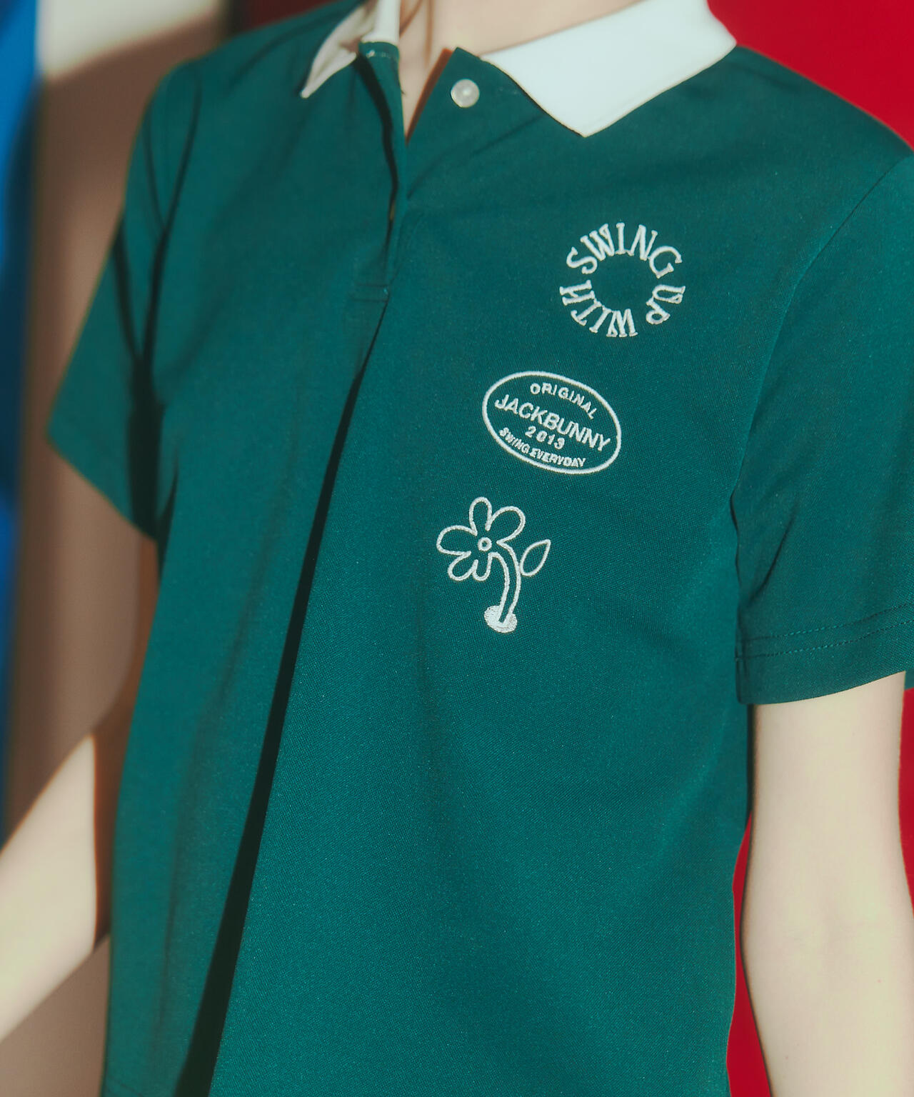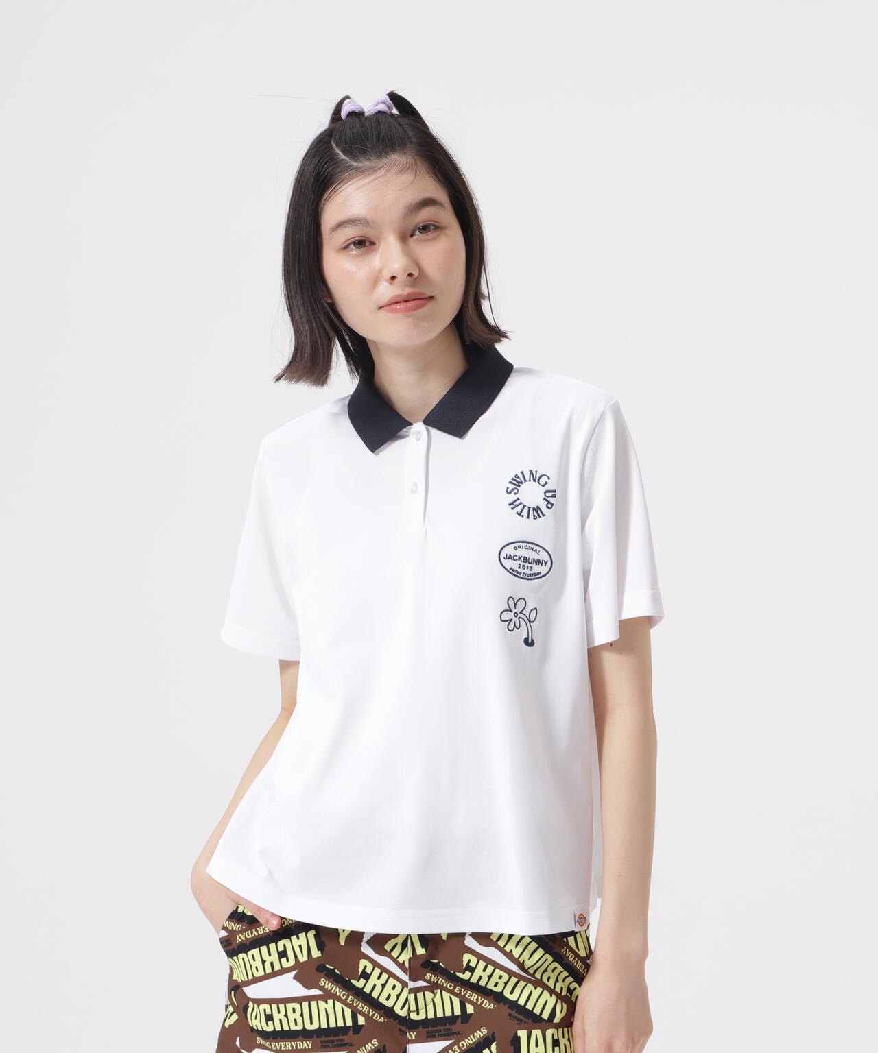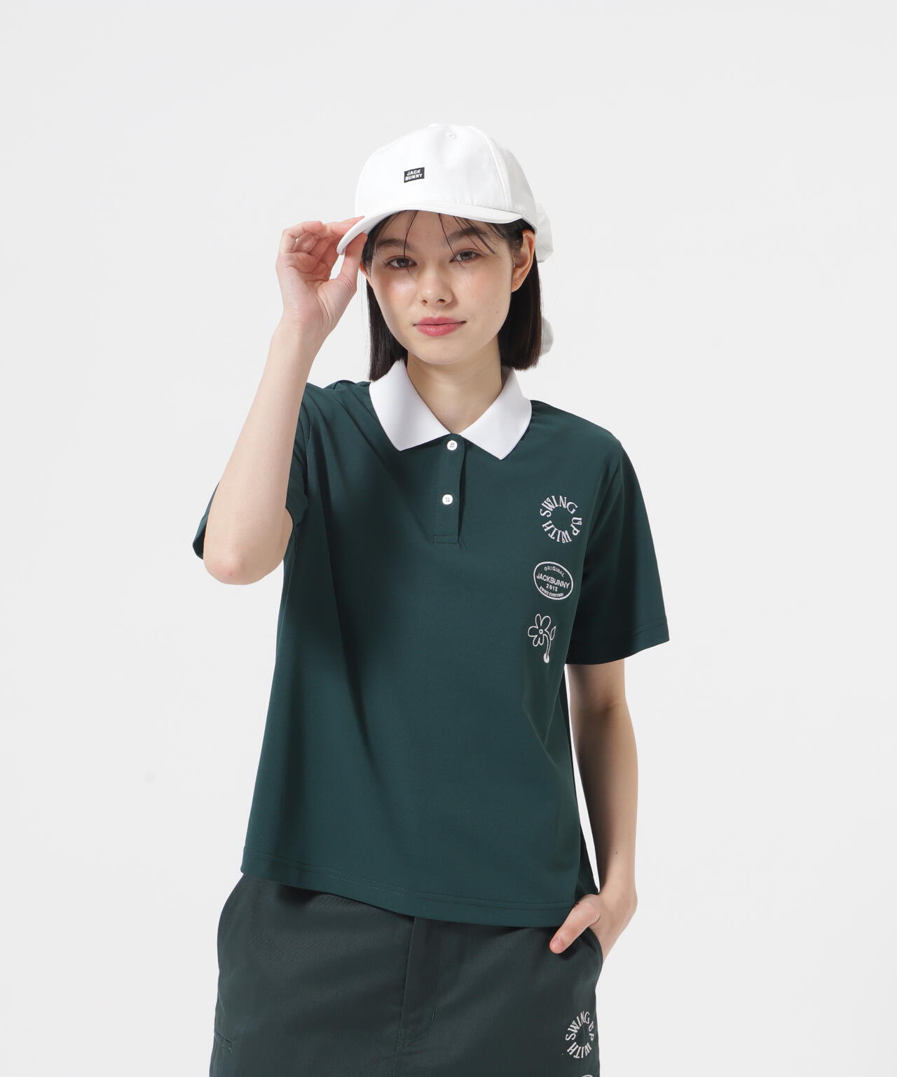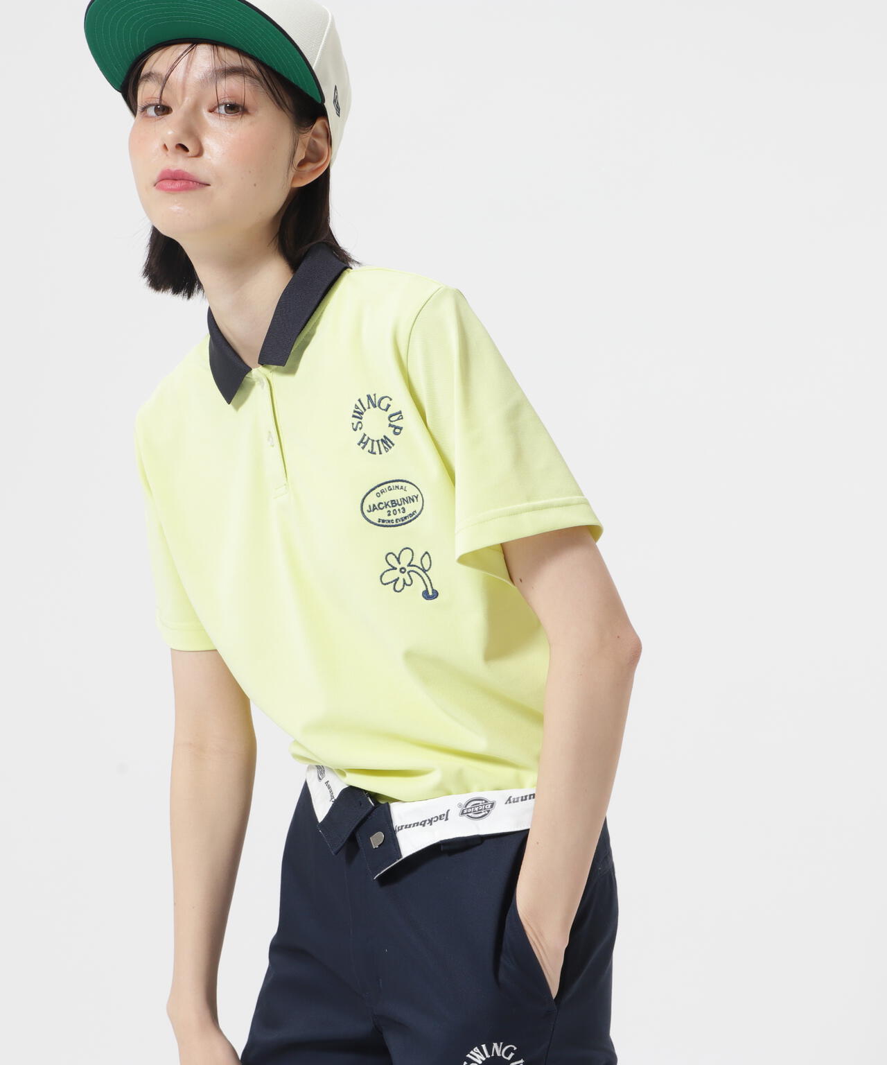 馬具モチーフの躍動感あふれるバックプリントでインパクトを与えた、Dickies PEカノコ半袖ポロシャツ。ゆるっと着られるストリートテイストなこなれたシルエットが可愛い、着こなしの幅を広げてくれる春夏らしいポロシャツです。さらりと着られる肌触りの良さを実感できる、通気性や吸水速乾性に優れたポリエステル生地で作られています。配色で切替したリブ襟や胸元のモチーフがコーディネートのアクセントにもなる、ゴルフからデイリーユースにも重宝する1着です。