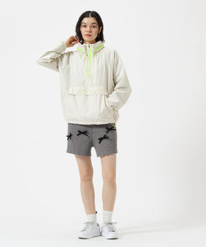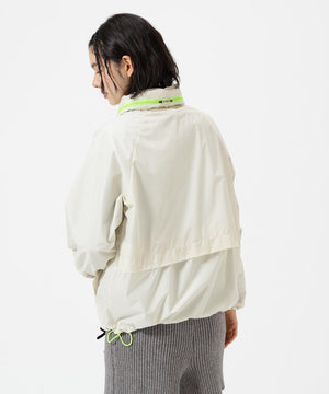 襟ぐりのスピンドルを絞って着ると新鮮な見え方になり、裾のドローコードの絞り加減でシルエットの変化を楽しめる、ゴルフからデイリーユースにもおすすめのアイテムです。