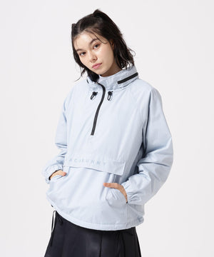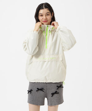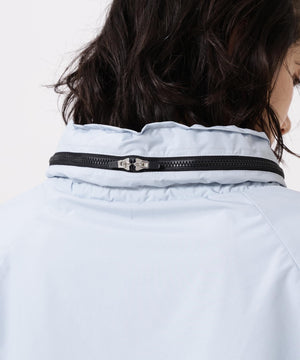 フードを畳んでしまえるスタンドカラーと、フロントのフラップ付きポケットがポイント。
