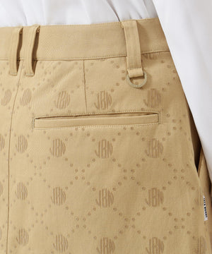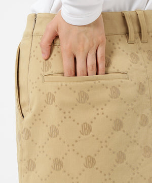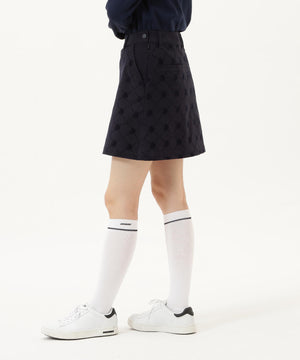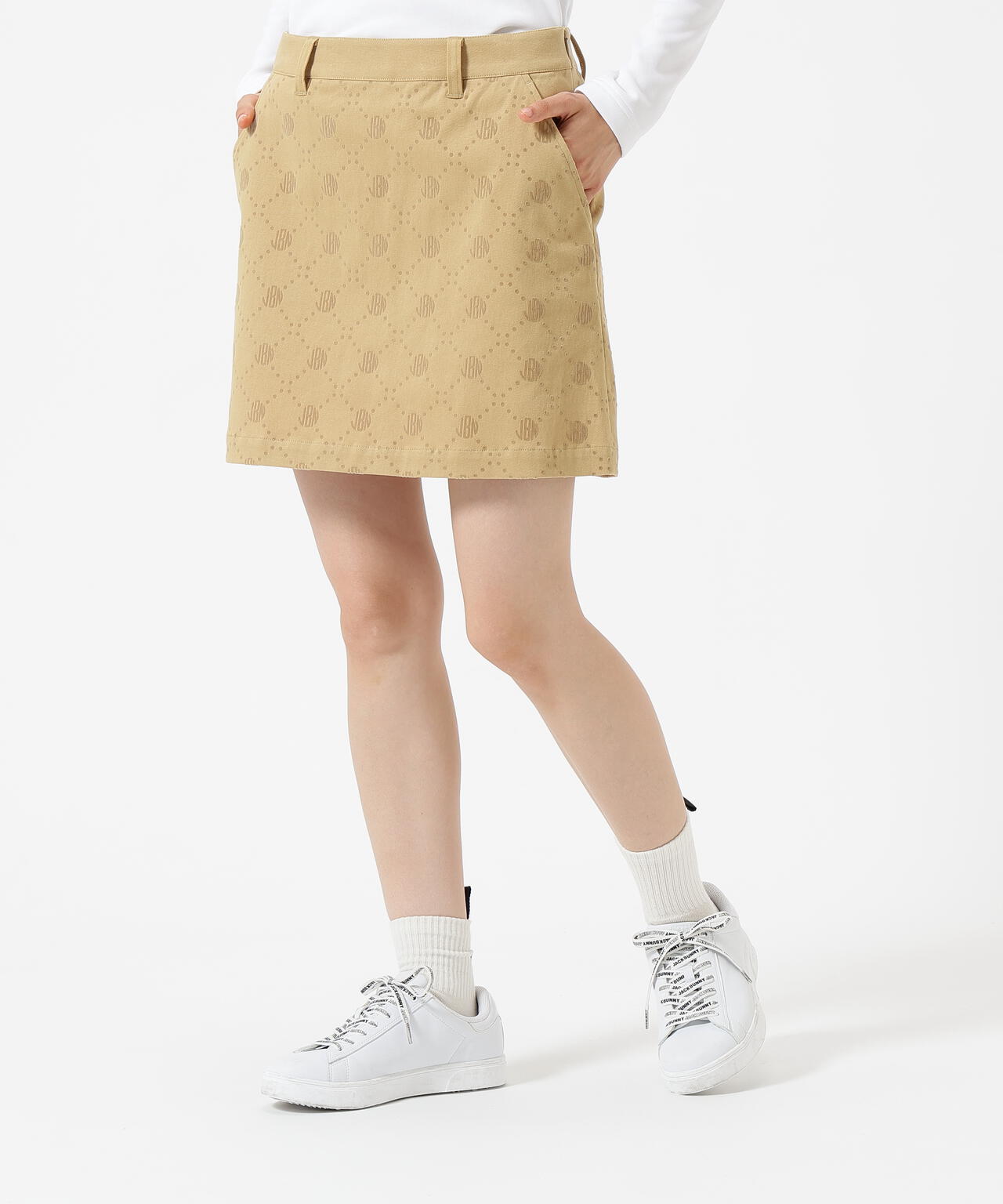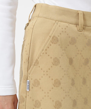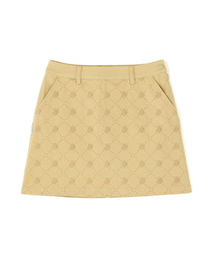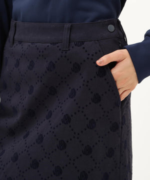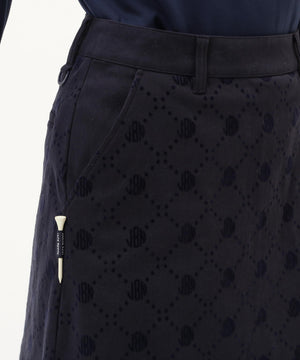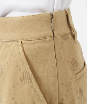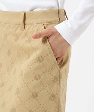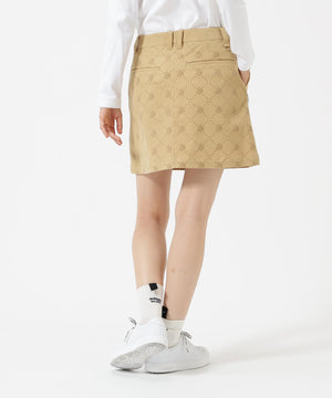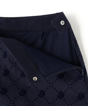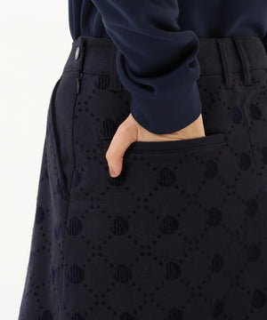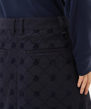 一見シンプルなツイルボトムですが、微配色でモノグラム柄がフロッキープリントされているUVカット性に優れたスカートです。