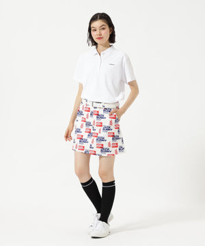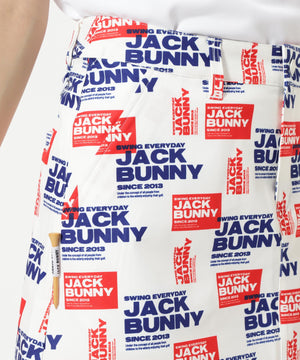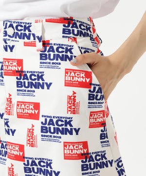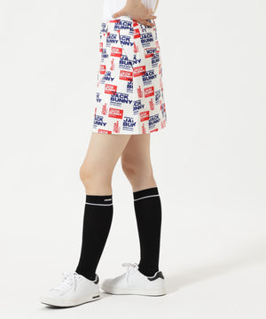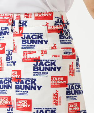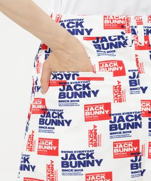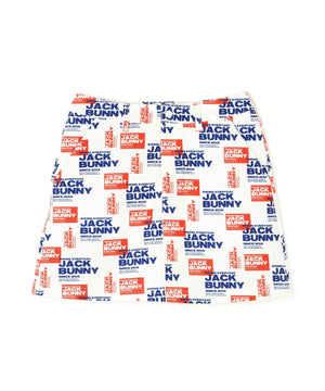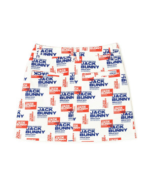 Jack Bunnyらしい遊び心のあるロゴで総柄をデザインした、ポリエステルツイルプリントスカート。