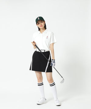脇の配色ロゴテープがポイントの、PEツイルスカート。
