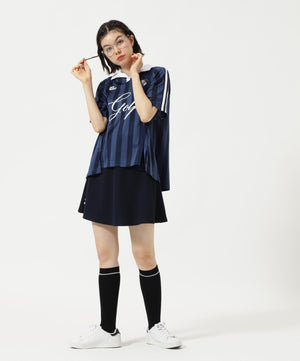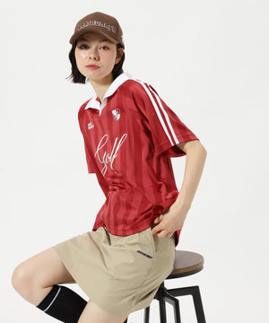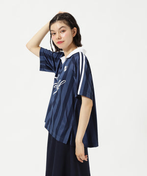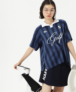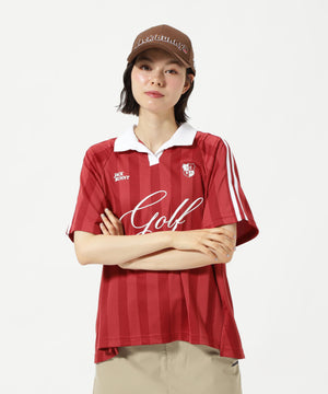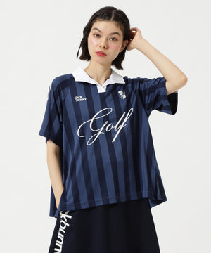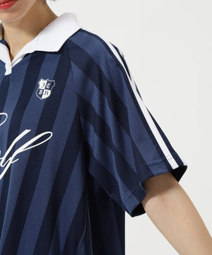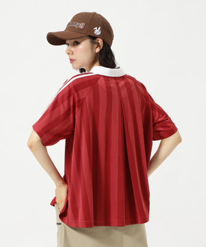 トレンドのゲームシャツデザインとシーズンコンセプト「UNITE」を落とし込んだ、ストライプジャガード半袖ポロシャツ。