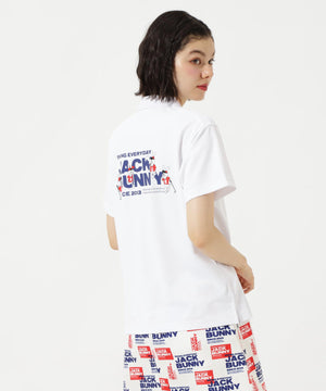 JACK BUNNYらしい遊び心のある3パターンのバックロゴがポイントの、フィールドセンター半袖ポロシャツ。
