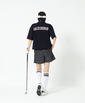 カレッジ風のバックロゴでカジュアルな印象に仕上がった、ゴルフからタウンユースまで幅広く活用できる一着です。
