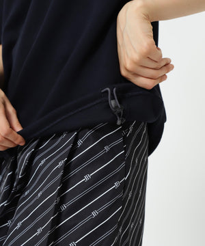 また、五分袖で裾にスピンドルが入っているので、長袖インナーとレイヤードして着るも良しです。