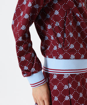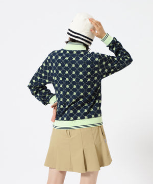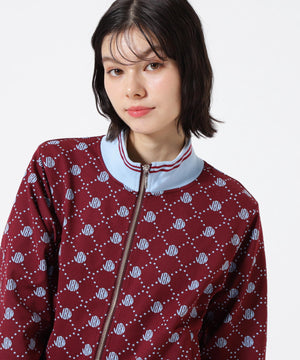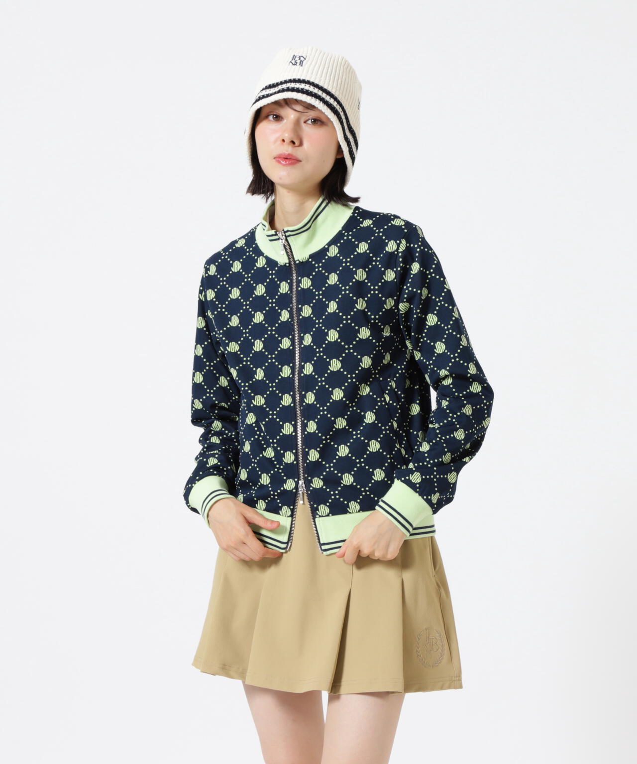 配色リブで切替した2ライン入りのディテールがポイントの、ロゴ モノグラムジャガードブルゾン。