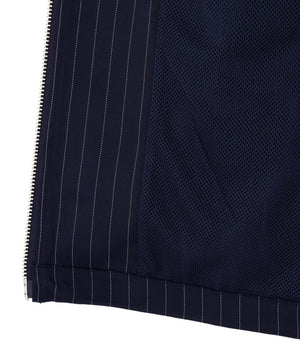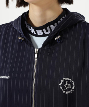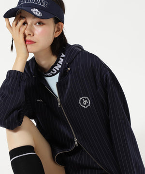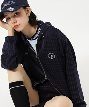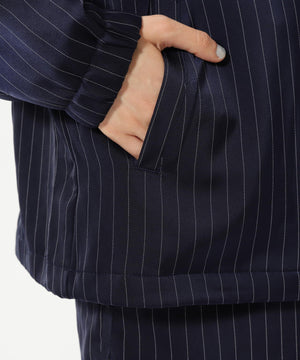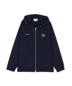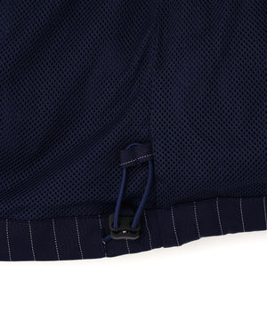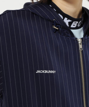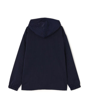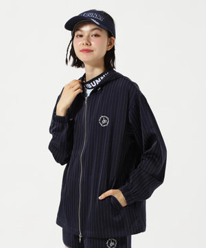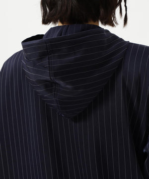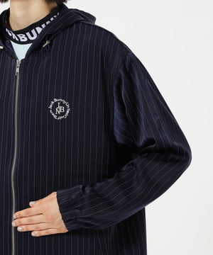 ナチュラルな風合いとサラッとした肌触りが特徴の、撥水効果のある先染めストライプ素材を使用した羽織としても重宝するアイテムです。