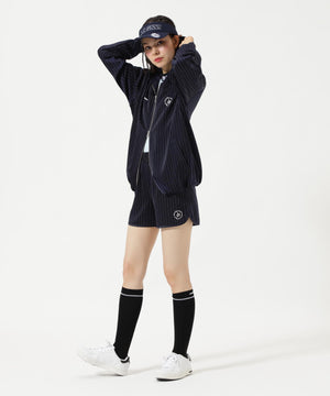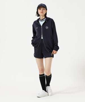 同素材のショートパンツと合わせた、大人の遊び心のあるセットアップコーデもオススメです。