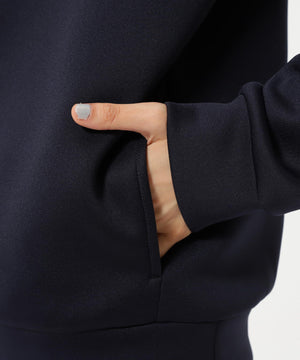 襟に程よく高さもあるので、モックネックカットソーとスウェットの間をとったような便利な一枚になっています。