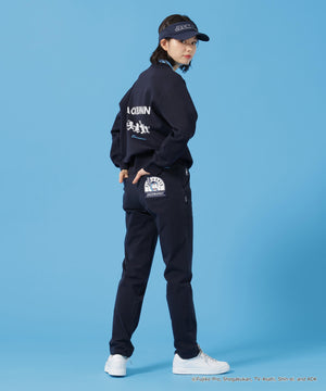楽しくカントリークラブへ向かうドラえもんのと仲間たちのチームアートを、シルエットのジャガードで表現されています。