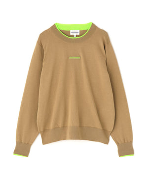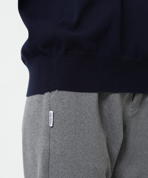 さりげなく入れた首元や袖口の配色ディテールがポイントの、16Gクルーネックニットプルオーバー。