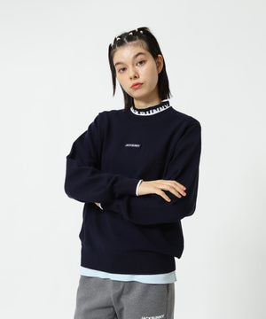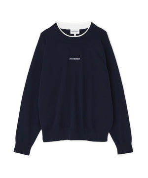 表面が滑らかで上品な印象を与える、シンプルなクルーネックニットアイテム。