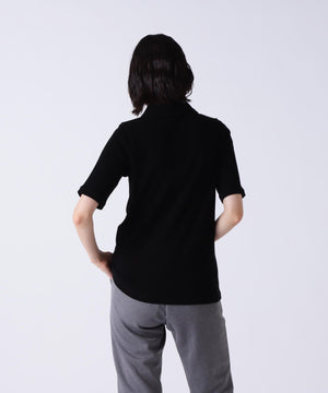 シャリっとしたタッチが暑い季節に嬉しい、ランダムピッチのリブ素材でトレンド感ある表情に仕上げたポロシャツ。