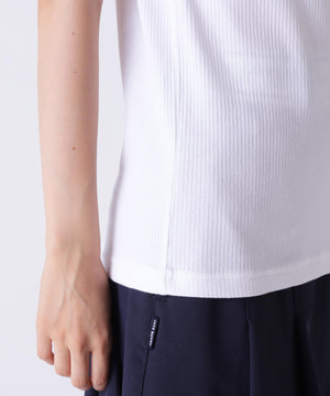ぴったりしすぎないリブ素材で、コンパクトながらもラインを拾いにくく、身体を綺麗に見せるシルエットにこだわりました。